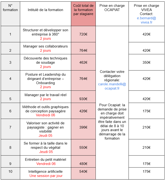 Tarifs et prise en charge OCAPIAT & VIVEA :