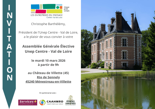 Christophe Barthélémy, Président régional, vous convie le 10 mars 2026 au Château de Villette (45) pour l’Assemblée Générale Élective 2023 de l’Unep Centre – Val de Loire.