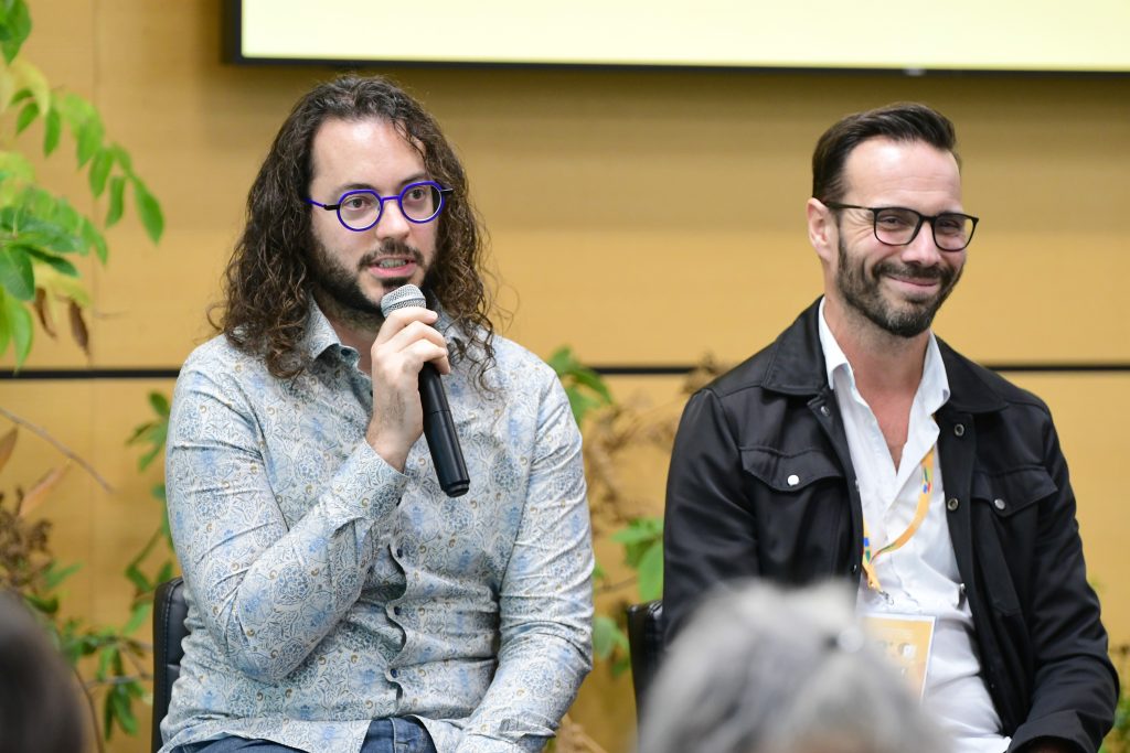 Cette table ronde a donné la parole à Hervé Ploquin, chef d’entreprise et formateur en permaculture appliquée, Julien Deferre, responsable de l’Institut des Métiers de la Nature et du Paysage des Compagnons du Devoir, et Baptiste Vandaele, apprenant en quatrième année de formation chez les Compagnons du Devoir. Ensemble, ils ont partagé leurs initiatives pour transmettre les savoirs végétaux, insistant sur la valeur du partage d’expérience et de la passion du métier.